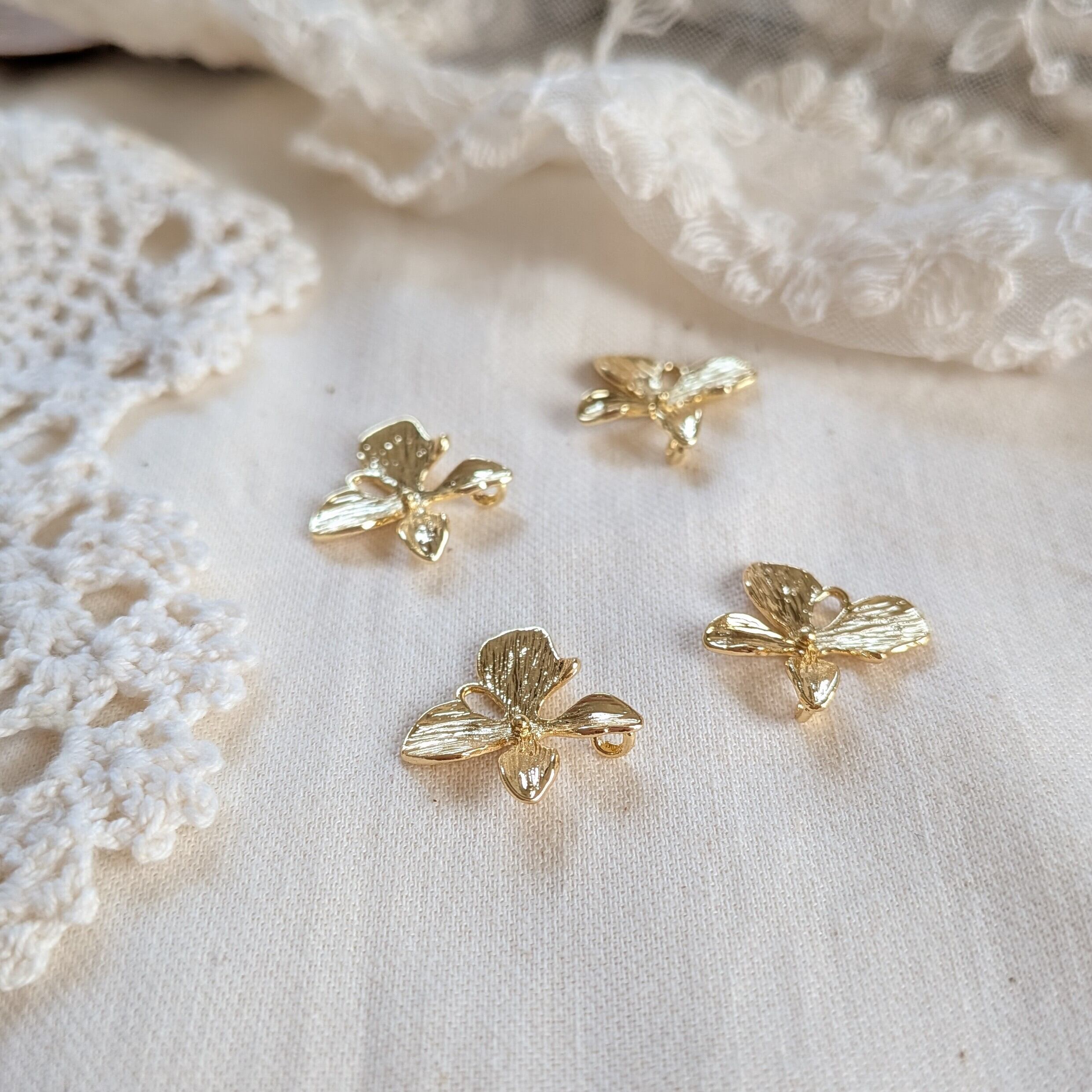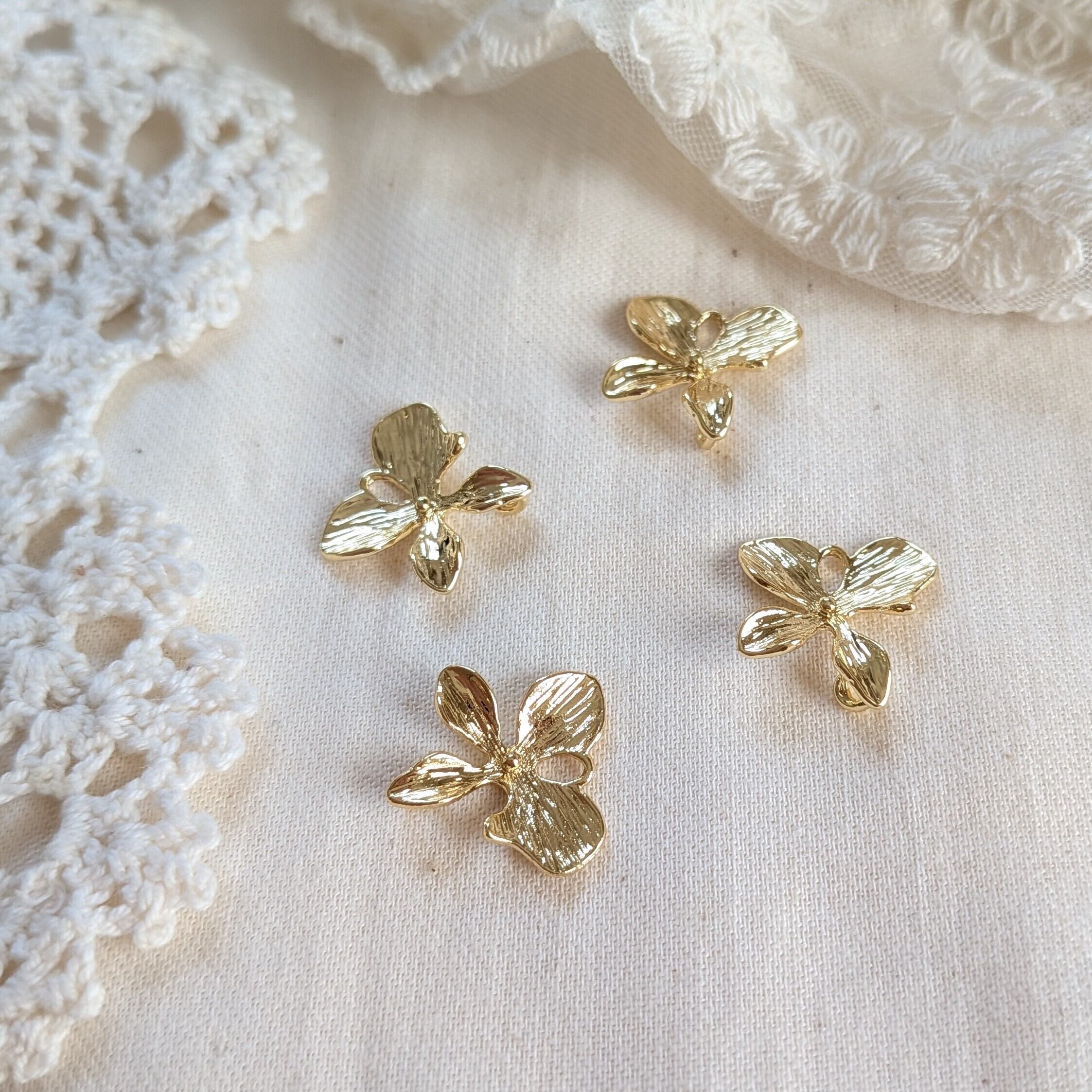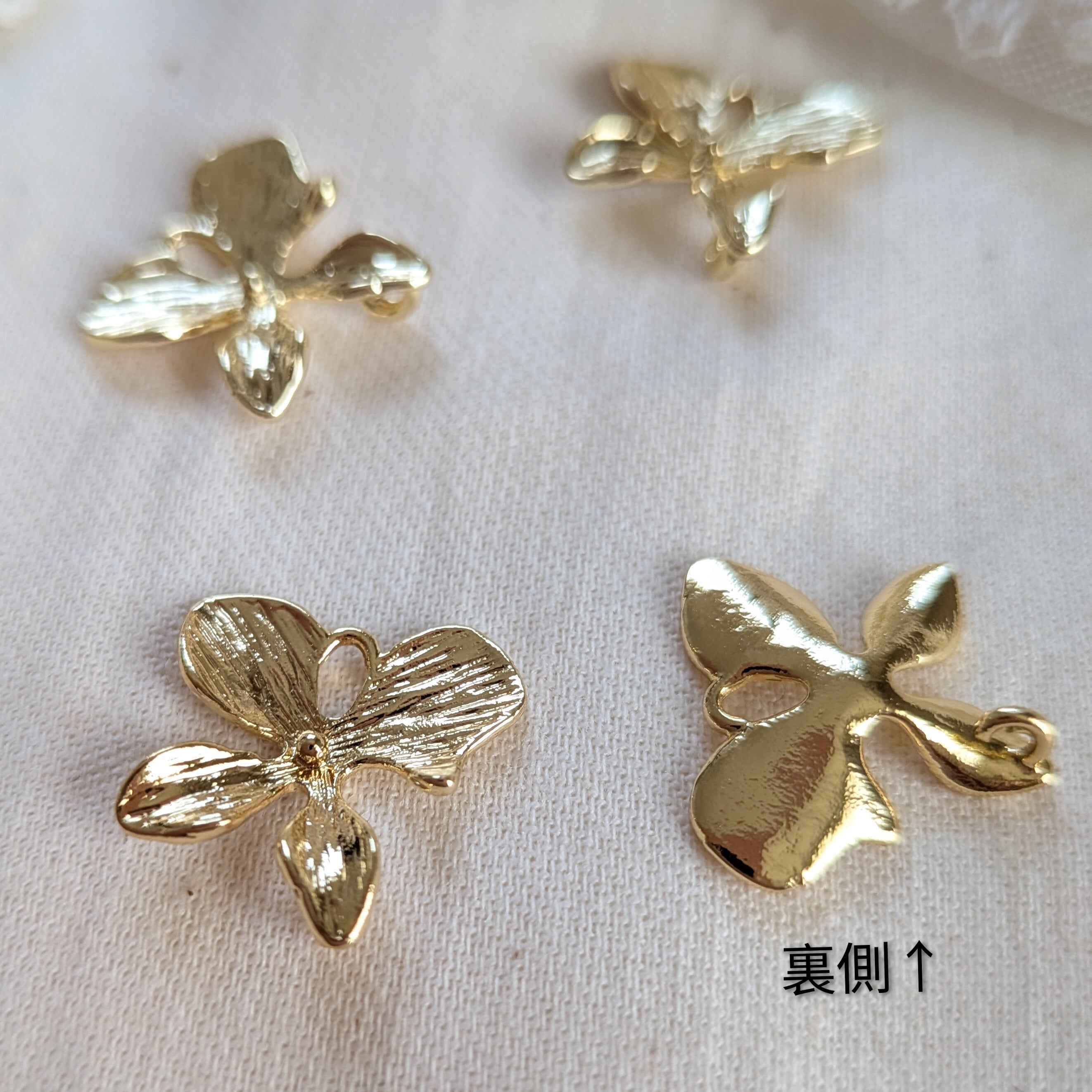 デザインフラワー(4枚花びら)のゴールドチャーム*2個セット