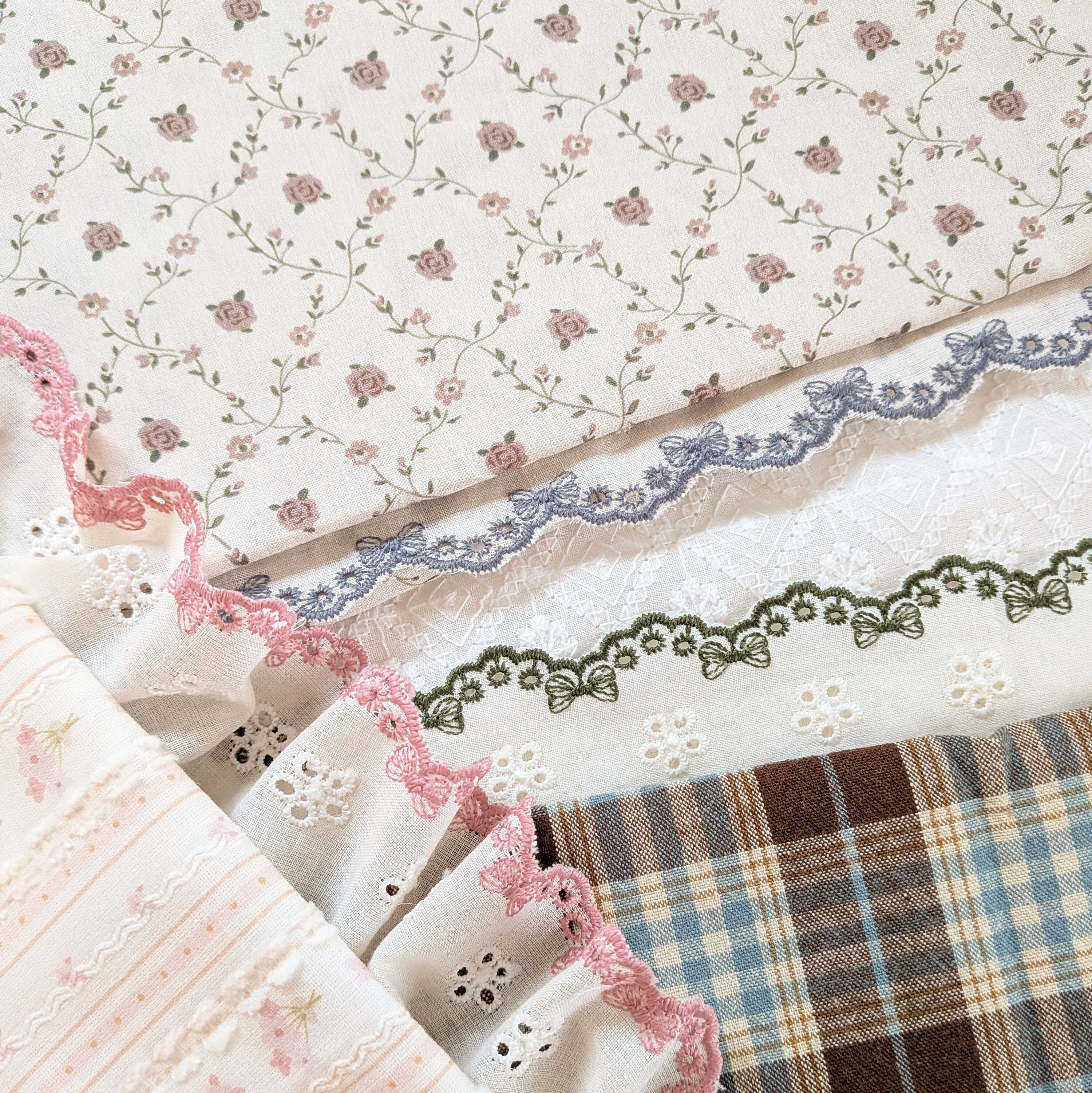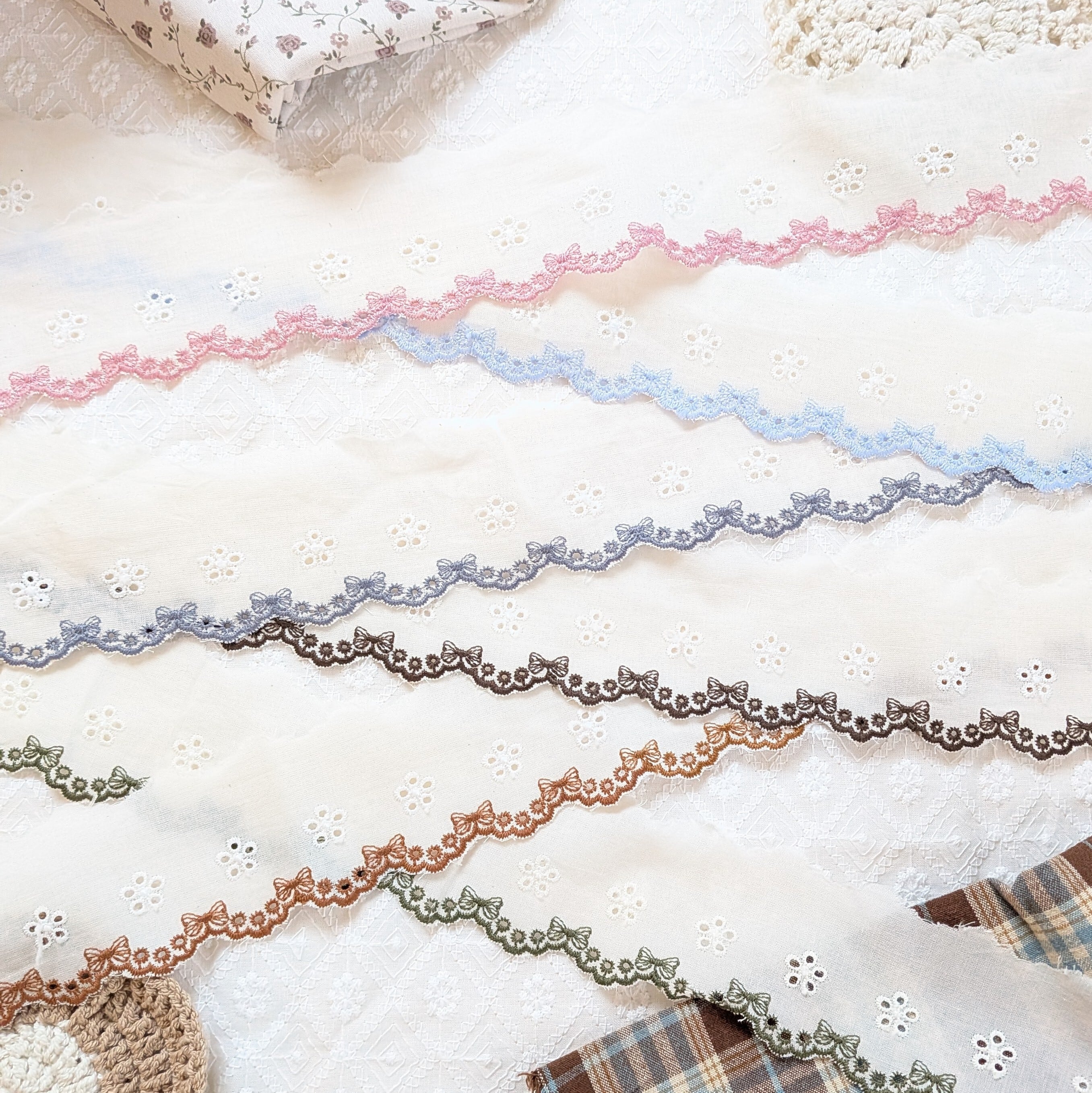 リボンの刺繍がふちどりされた可愛いレース。