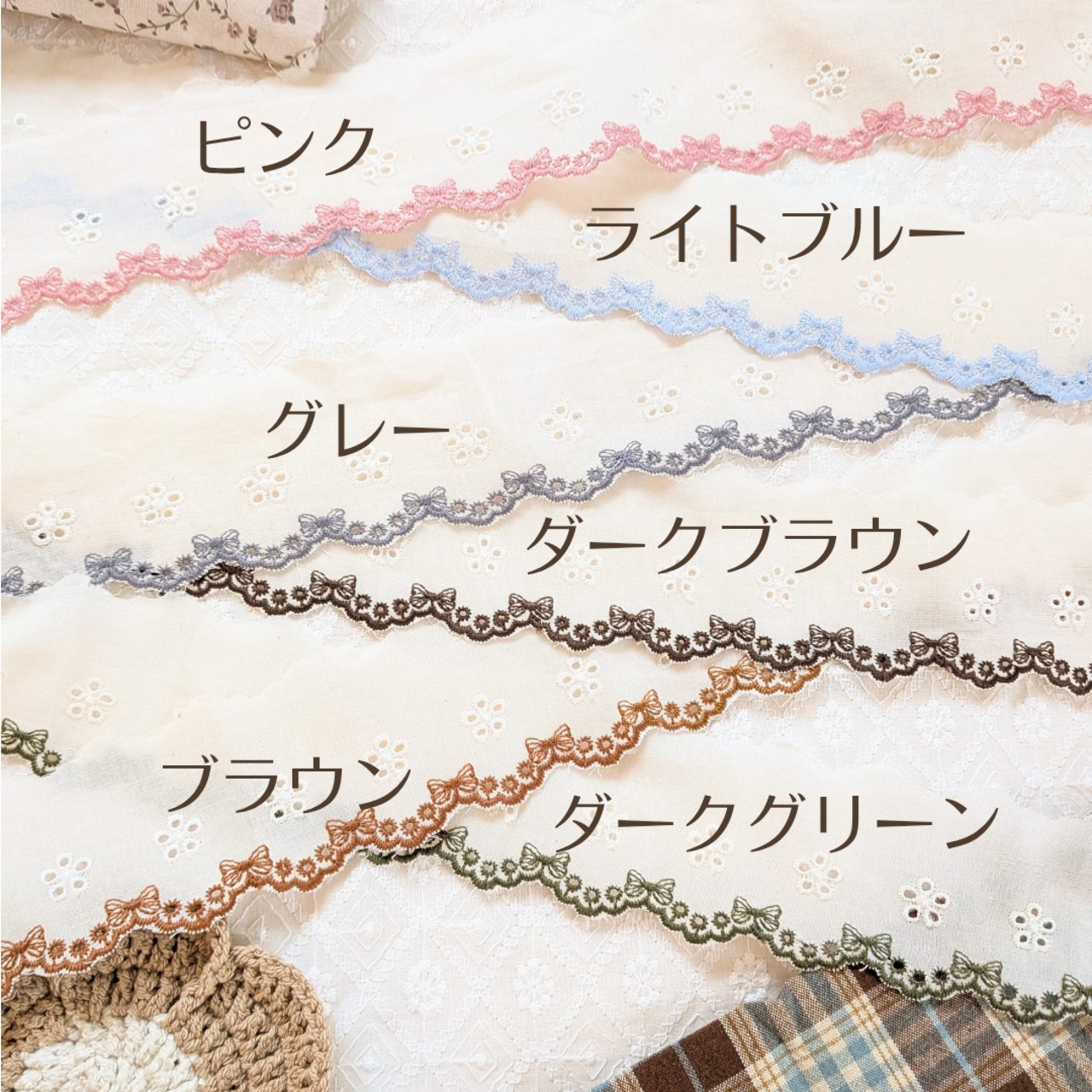 リボンとお花柄のコットンレース*6色*50cmあたり