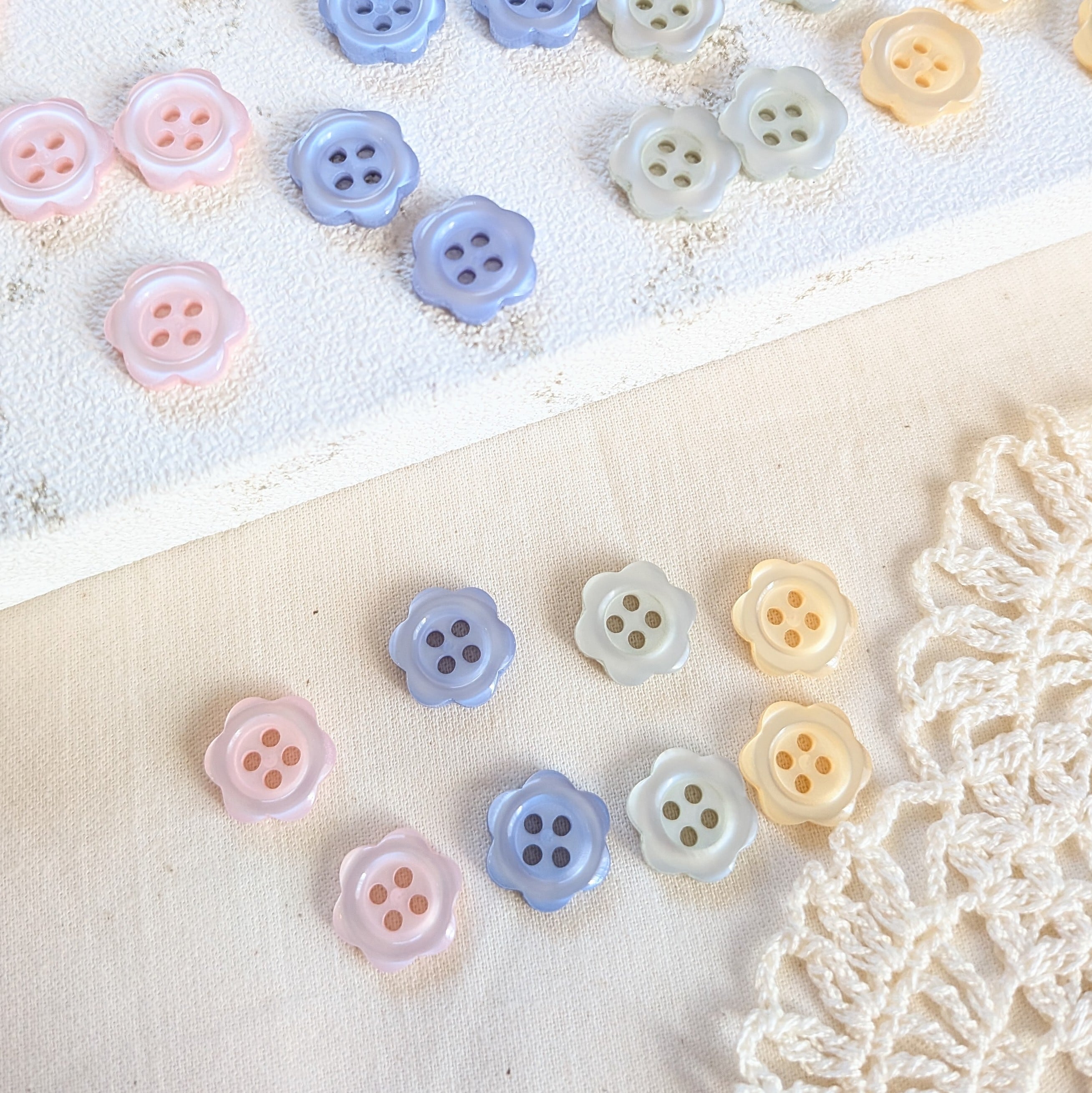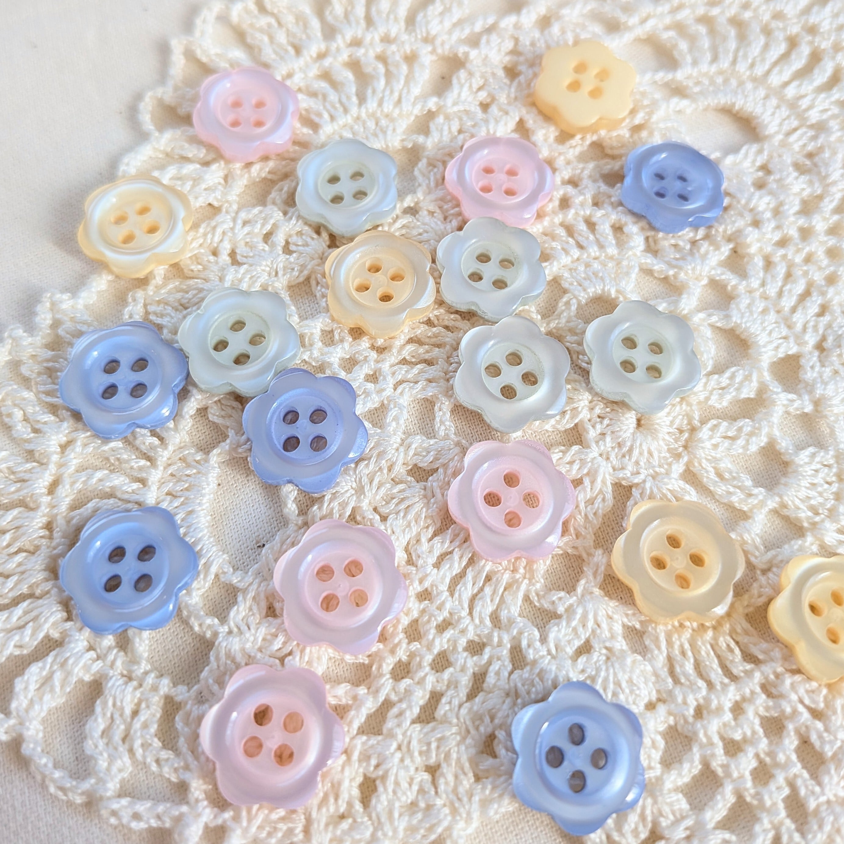 パステルカラーのお花のカタチが可愛いボタン。