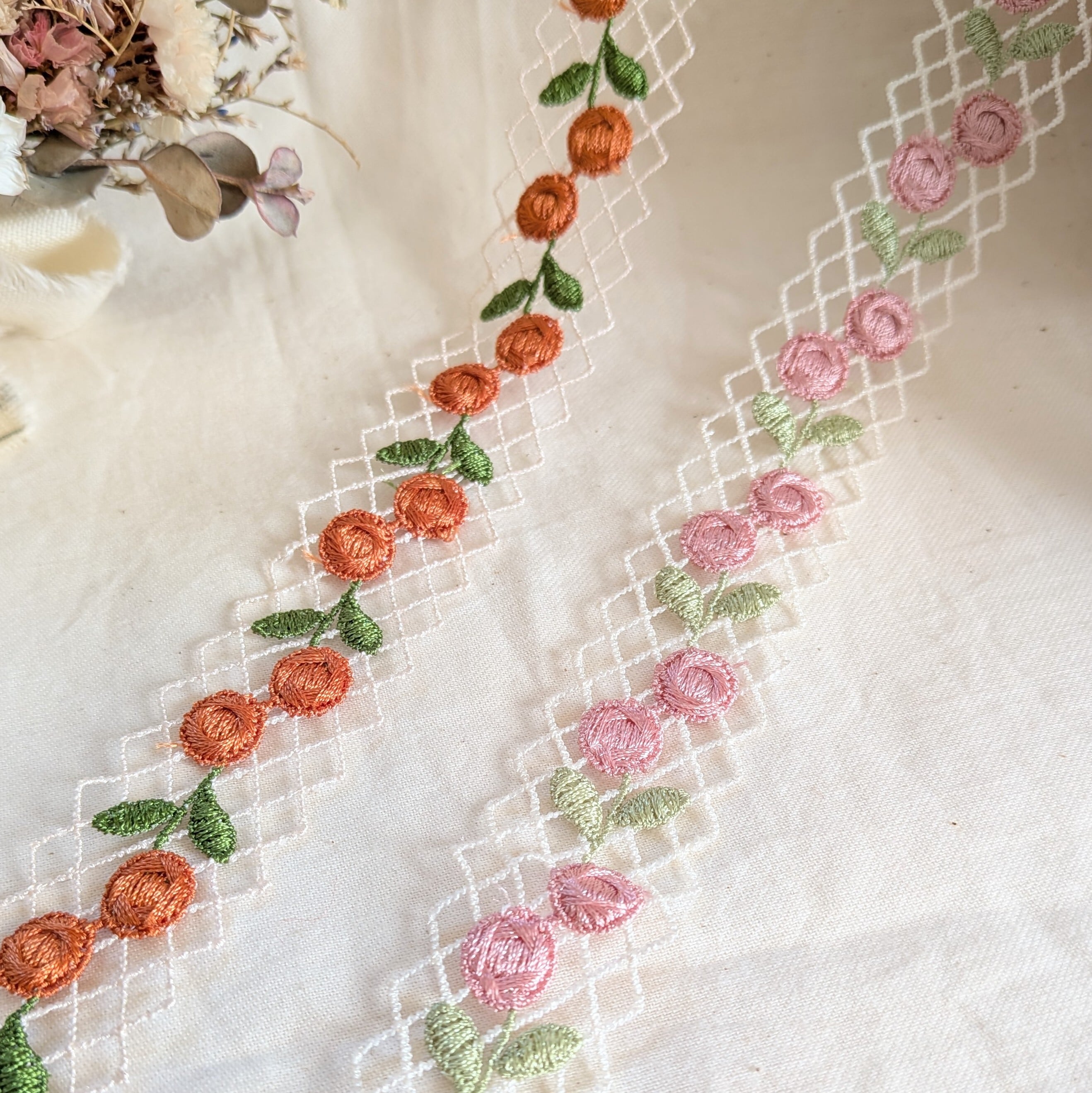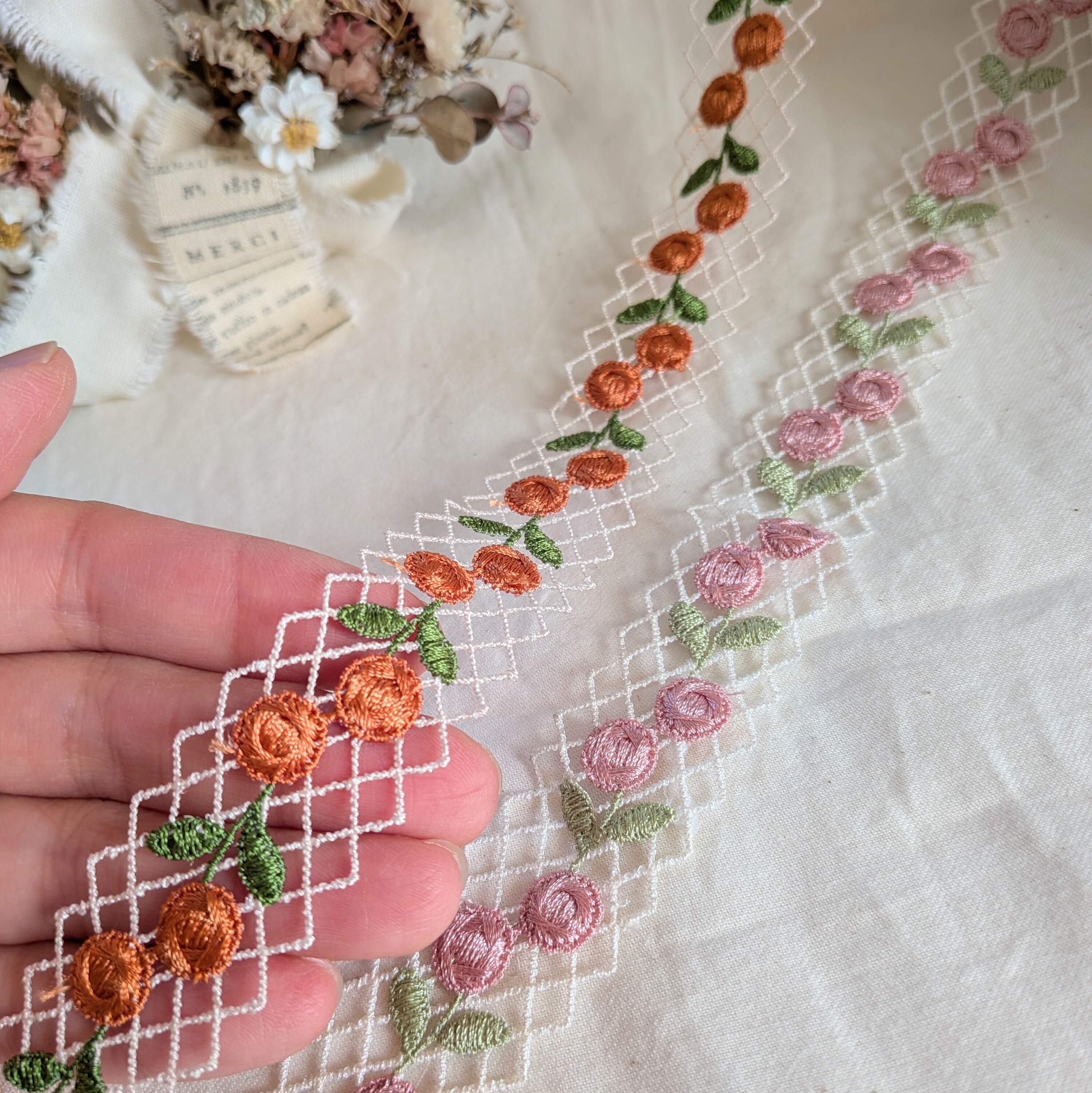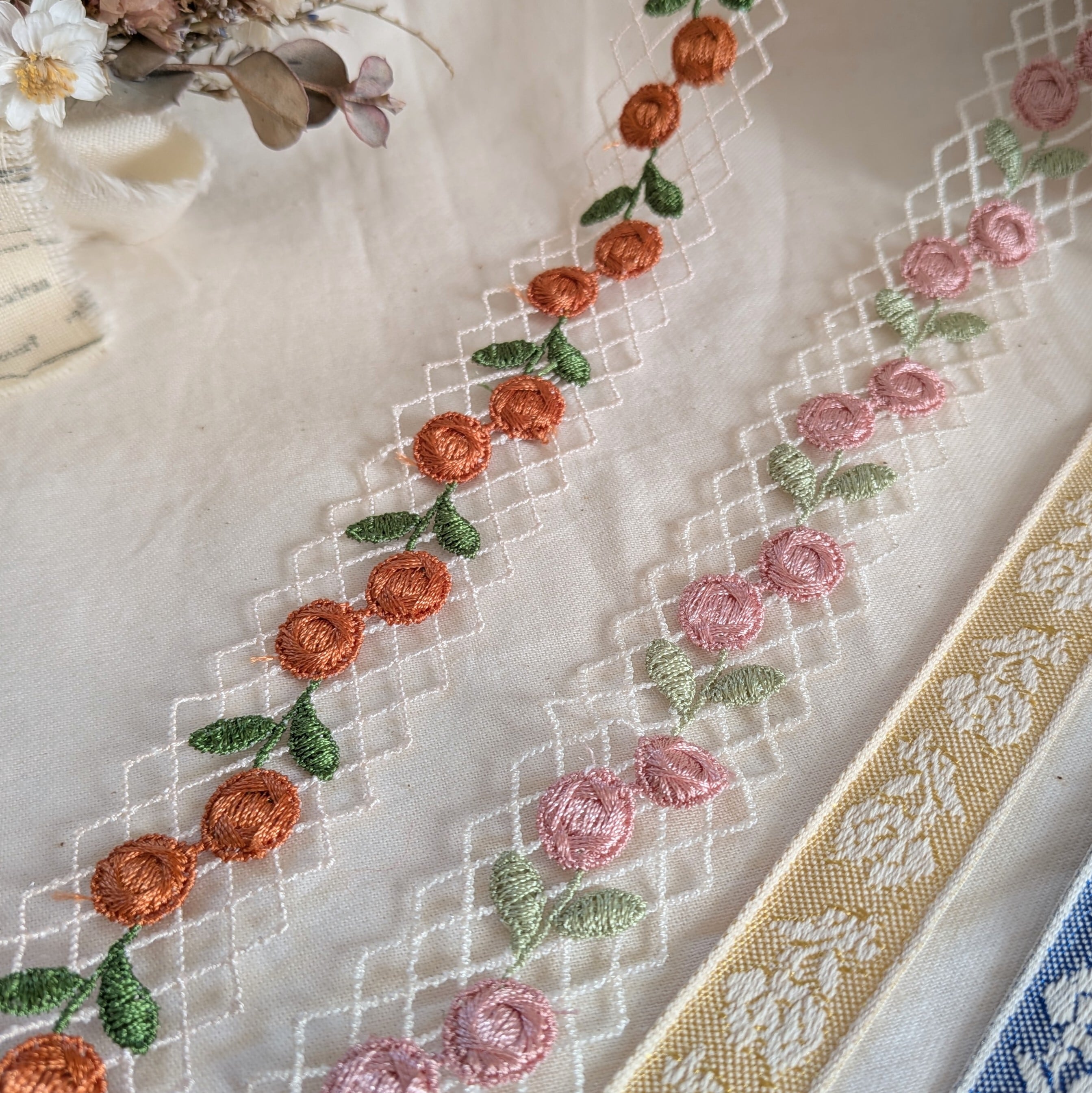 野ばらの刺繍のチュールリボン*メッシュレース*50㎝あたり