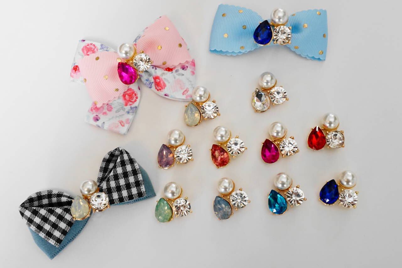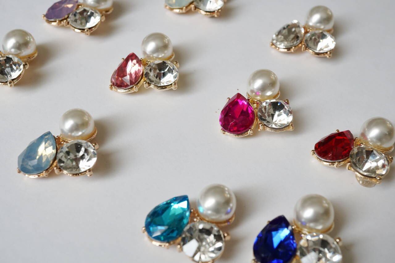 ドロップ型のカラービジューとパールとクリアビジューがギュッと詰まった