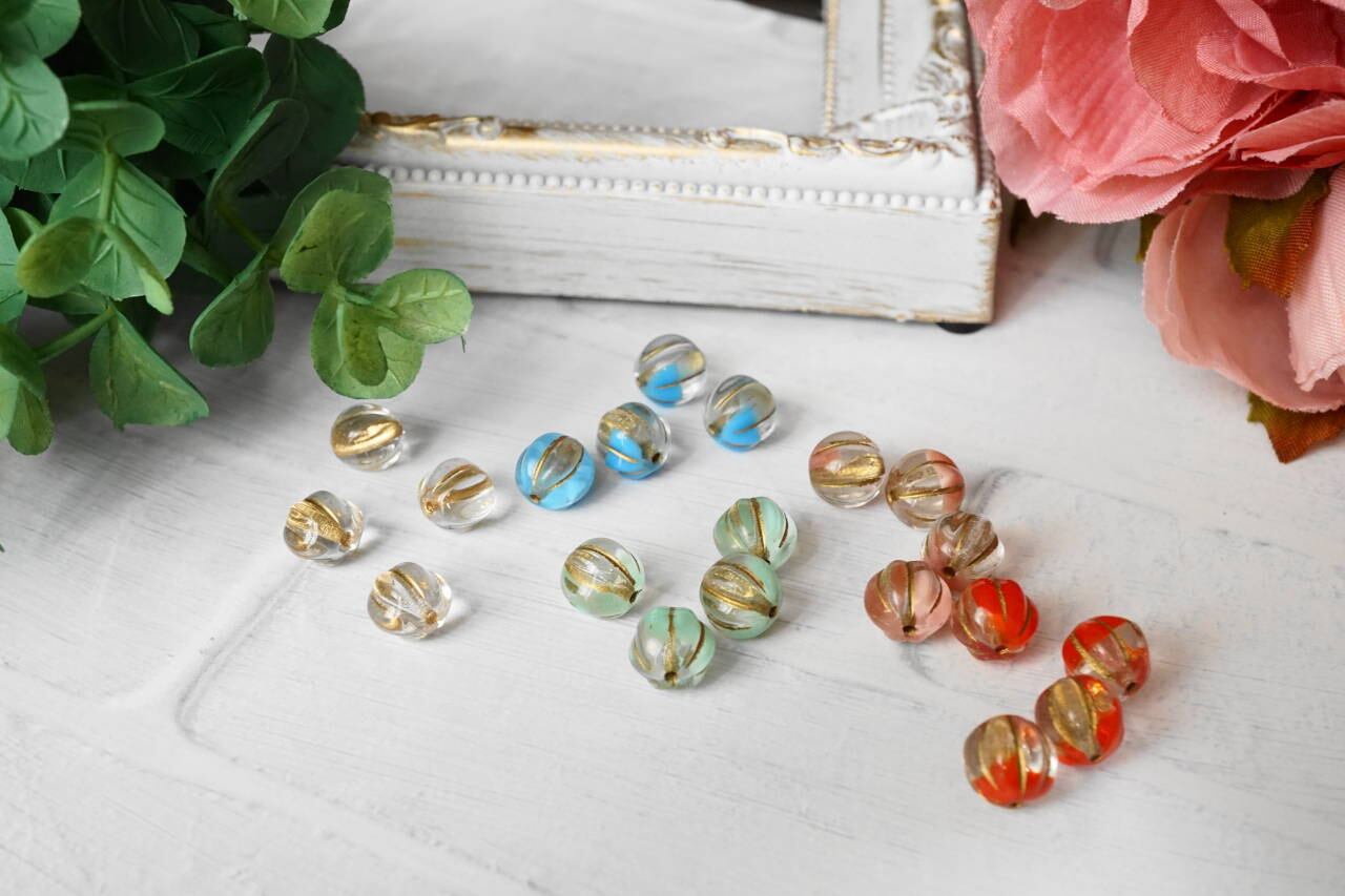 8mm*クリアなカボチャビーズ*ゴールドライン*2個セット