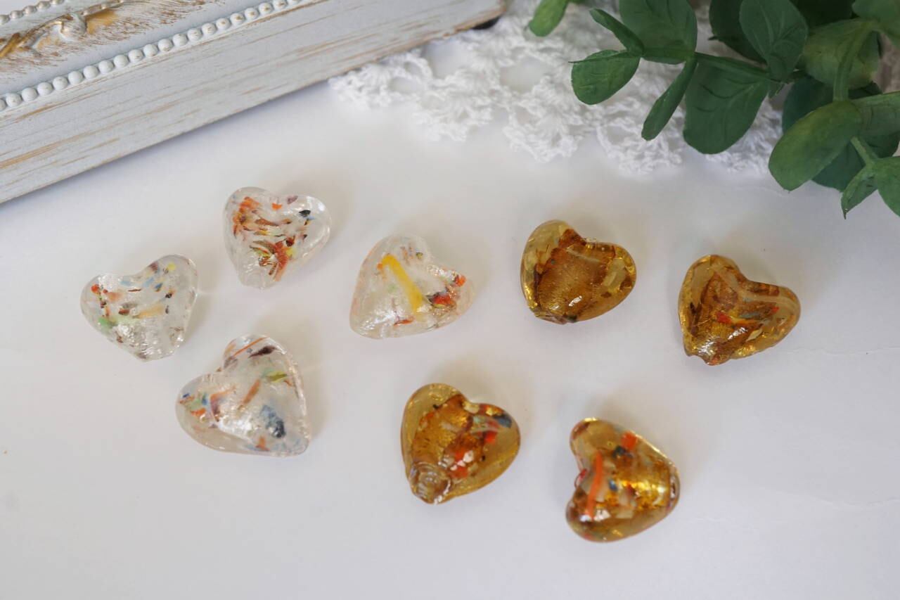 ハート型のガラスビーズ。