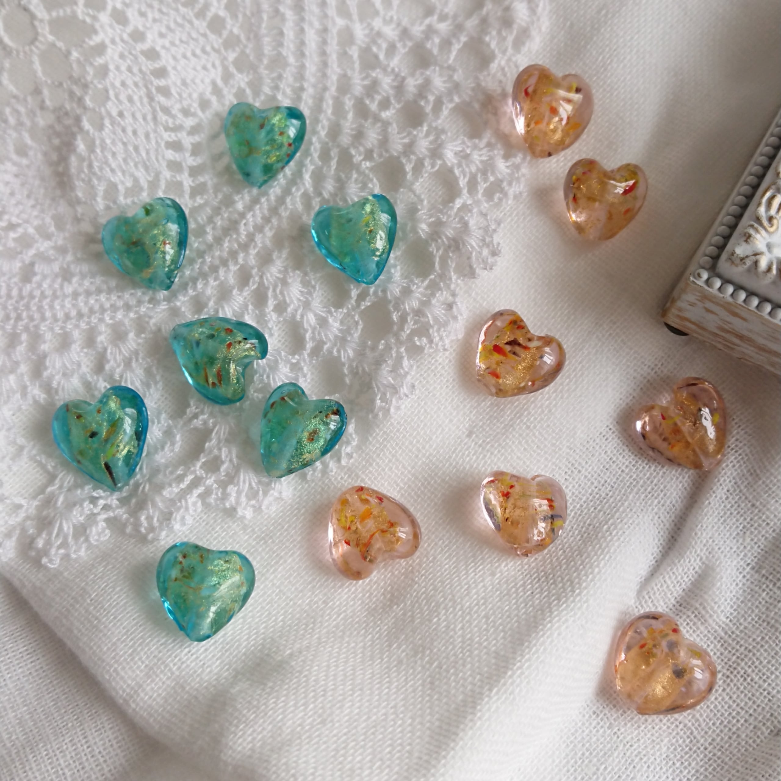 ハートガラスビーズ*ブルー・ピンク*2個セット