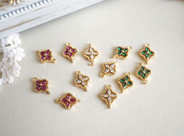 ストーンのカラーはピンク・グリーン・クリアの3種です。
