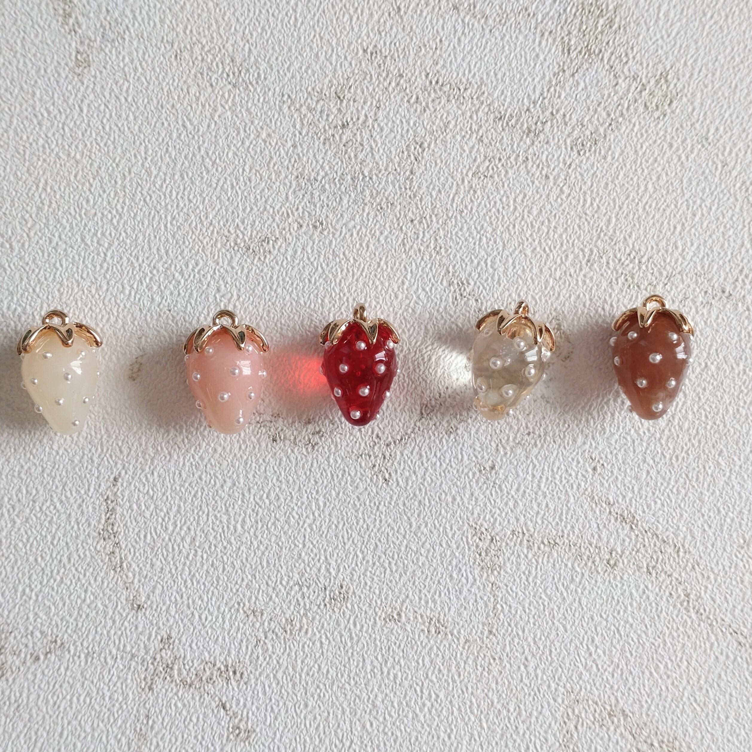 ガラス風*苺の立体チャーム*5色*1個当たり